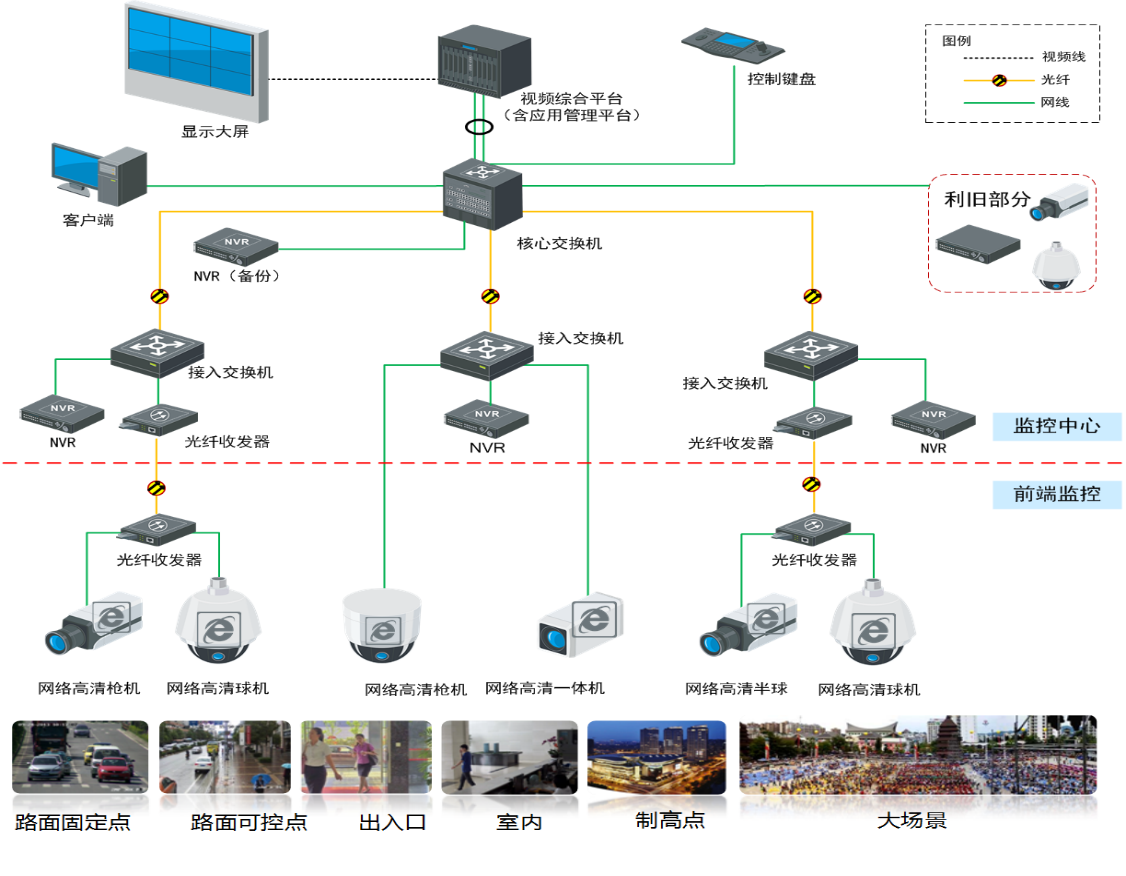 智慧社区监控及报警系统采用高清视频监控技术,实现视频图像信息的高清采集、高清编码、高清传输、高清存储、高清显示;系统基于IP网络传输技术,提供视频质量诊断等智能分析技术,实现全网调度、管理及智能化应用,为用户提供一套“高清化、网络化、智能化”的视频图像监控系统,满足用户在视频图像业务应用中日益迫切的需求。
